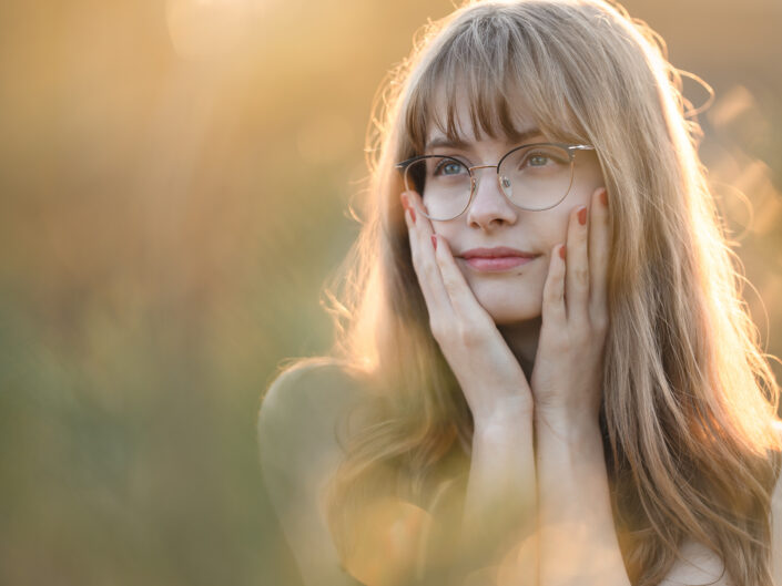 Een speels samenspel van zonnestralen en schaduwen, terwijl tegenlicht en bokeh een extra dimensie aan het portret geven.